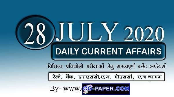28 july 2020 current affairs टॉप महत्वपूर्ण क्वेश्चन आंसर जो प्रतियोगी परीक्षाओं में पूछे जाते हैँ। railway NTPC, Group D, Banking, Chhattisgarh Vyapam की परीक्षाओं मे पुछे जाते है