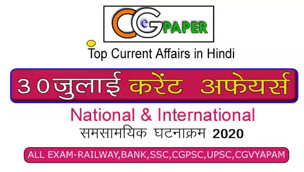 30 july 2020 current affairs टॉप महत्वपूर्ण क्वेश्चन आंसर जो प्रतियोगी परीक्षाओं में पूछे जाते हैँ। Railway NTPC, Railway Group D, Banking, Chhattisgarh Vyapam की परीक्षाओं मे पुछे जाते है