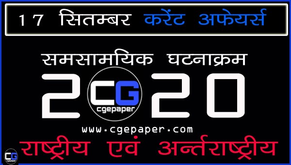 17 सितम्बर 2020 daily Current Affairs in Hindi (टॉप करेंट अफेयर्स 2020)