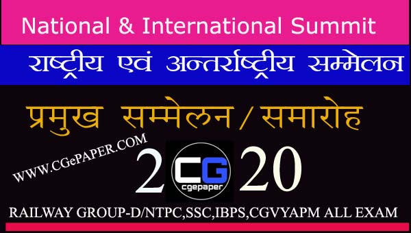 राष्ट्रीय एवं अंतर्राष्ट्रीय सम्मेलन 2020: List of important Summits 2020, shikhar sammelan 2020 समसामयिक घटनाक्रम करंट अफेयर्स 2020 छत्तीसगढ़ व्यापम, एसएससी, रेलवे, IBPS सभी प्रतियोगी परीक्षा में अहम भूमिका निभाते हैं, करंट अफेयर्स सभी सेक्शन के क्वेश्चन आंसर रहते है।