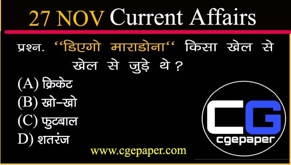 27 november 2020 Current Affairs Today के बारे में most important टॉप current affairs 2020 Questions Answers की जानकारी दी गई है,