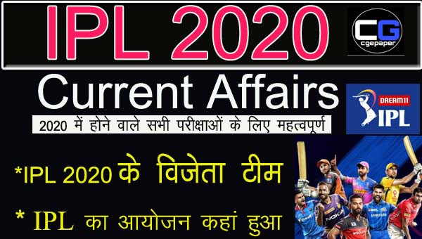 IPL करेंट अफेयर्स 2020 के बारे मे बताया गया है की कौन सी टीम विजेता बनी, किसको पर्पल केप मिला, ऑरेंज कैप किसको मिला के बारे मे प्रश्न पुछे जाते है ।