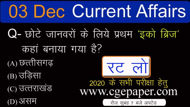 Current affairs आने वाले एग्जाम रेलवे NTPC, Group D, Banking, SSC, CGPSC, UPSC, छत्तीसगढ़ व्यापम की परीक्षाओं मे latest Current Affairs से संबंधित प्रश्न पुछे जाते है ।