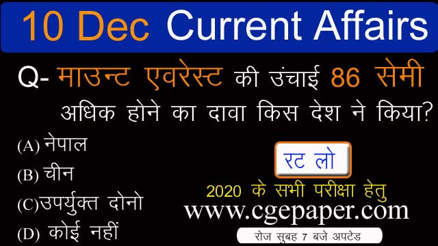 प्रश्न-8 हाल ही मे किस देश ने माउंट एवरेस्ट की ऊंचाई 86 सेंटीमीटर अधिक होने का दावा किया है?